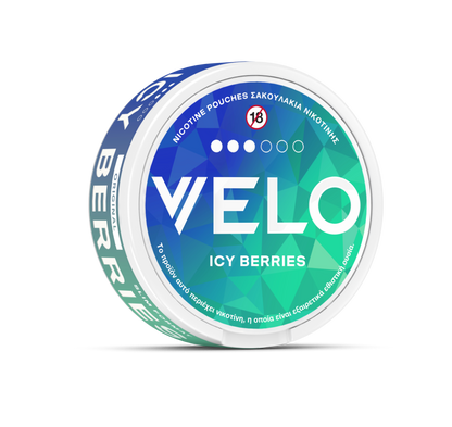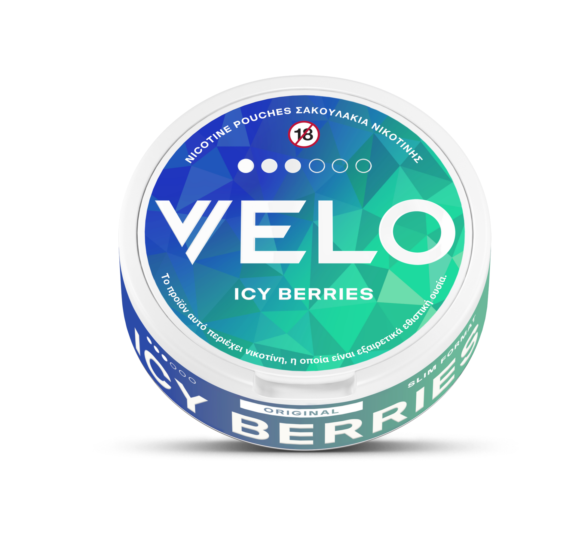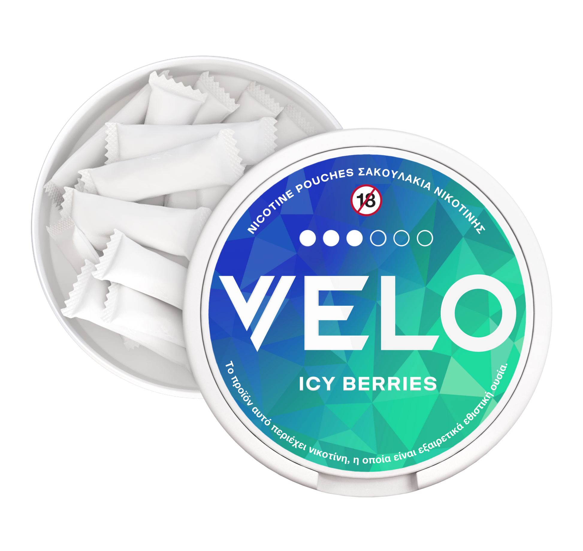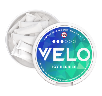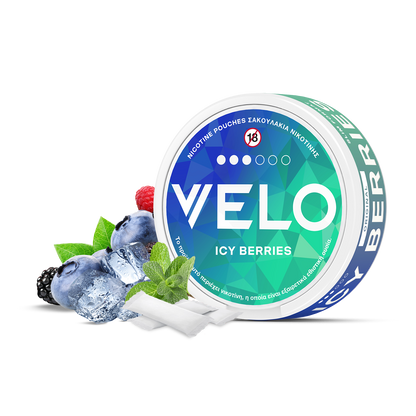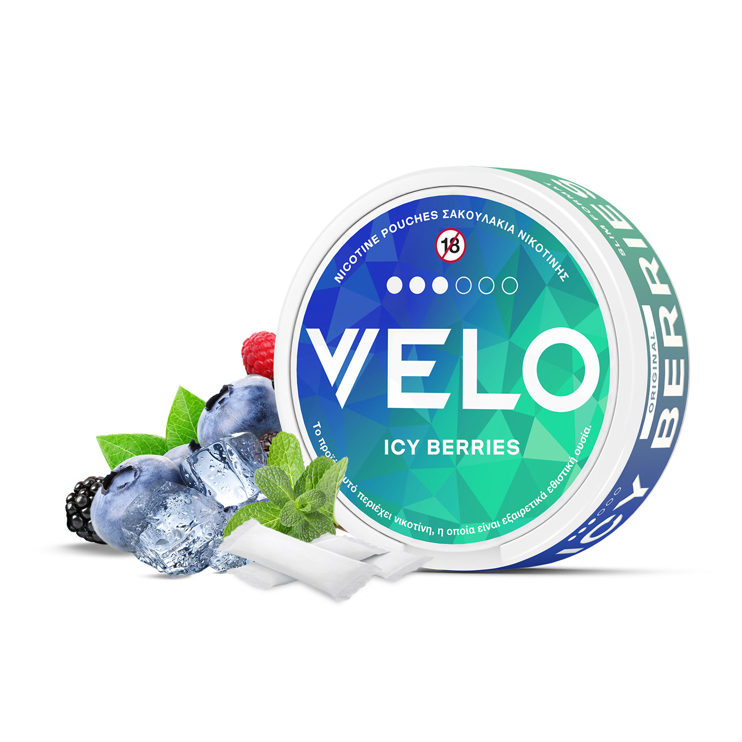 Το VELO Icy Berries διαθέτει συνδυασμό τριών μούρων από μύρτιλα, σμέουρα και βατόμουρα, με δροσιστική επίγευση μέντας.
